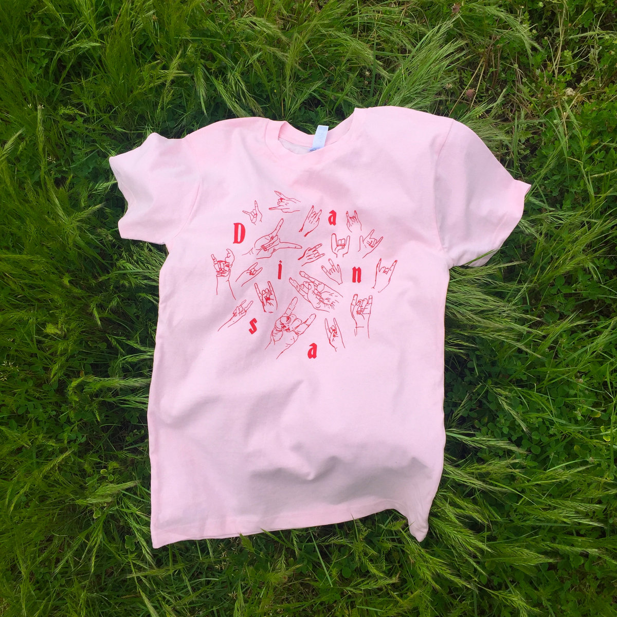 Dianas pink tee//red design with Caity Moloney \m/ design. Printed on AS Colour block tees - only a couple left x