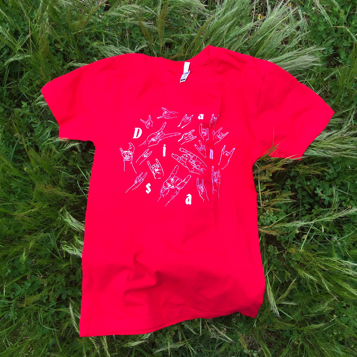 Dianas red tee//pink design with Caity Moloney \m/ design. Printed on AS Colour block tees - only a couple left x
